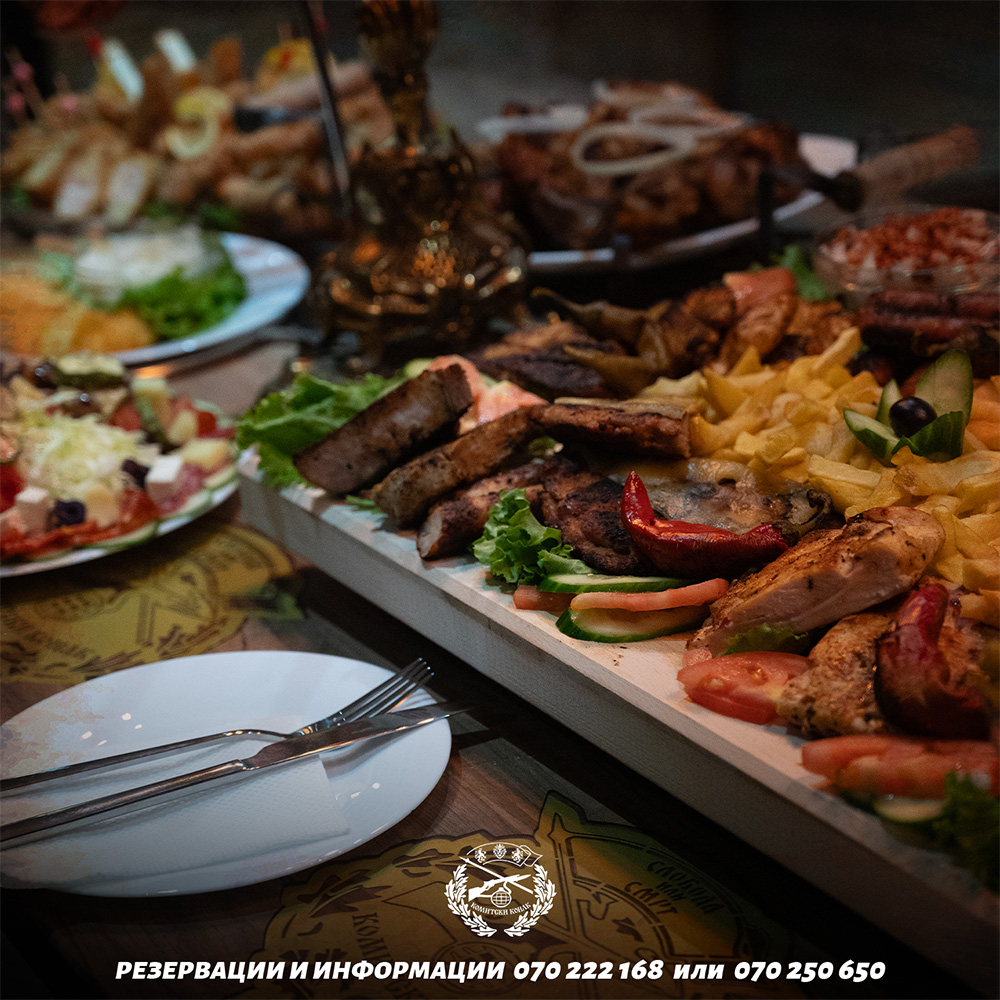 Ресторанот во нашиот комплекс е идеално место со уникатен патриотски амбиент. Идеален е за ручеци и вечери со семејството и пријателите, но и за Вашите свечени моменти и прослави.